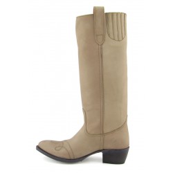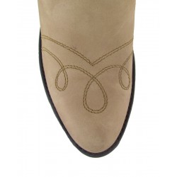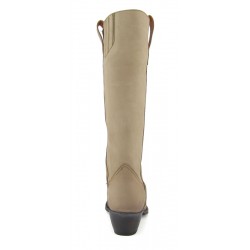 Stivale Sendra in pelle bovina nobuck, punta arrotondata e tacco di 4,5 cm. leggermente inclinato .Suola in cuoio e cucitura Goodyear. Orma Sara e tacco Sara. Altezza stivale 35 cm circa. 100% pelle . Made in Spain.
