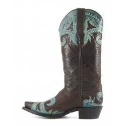 Stivali in pelle bovina con inserti sul piede e sull'asta. Rivetti metallici arricchiscono lo stivale. Altezza stivale 36 cm circa. Altezza tacco 4 cm circa. Suola in cuoio e cuciture Goodyear. Made in Messico. 100% pelle.