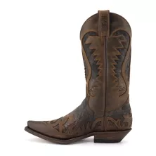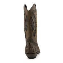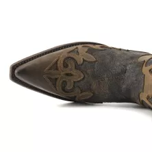 Stivale Mayura in stile texano. Splendidi intarsi in contrasto sull'asta e giglio sul piede. Altezza stivale 32 cm circa. Altezza tacco 3,5 cm circa. 100% pelle. Cuciture Goodyear e suola in cuoio. Made in Spain.