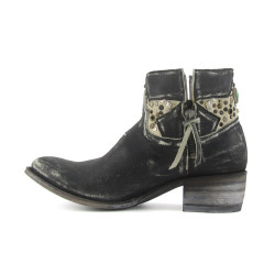 Tronchetto Sendra in pelle bovina con aspetto vissuto e con decori sull'asta. Altezza stivale 16 cm circa. Altezza tacco 4,5 cm circa. Suola in cuoio e cuciture Goodyear. Orma Sara. Tacco Sara. 100% pelle. Made in Spain.
