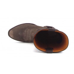 Sontuoso stivale Sendra in pelle bovina. La pelle del piede è lavorata attribuendole il tipico aspetto del lizard mentre l'asta è morbidissima con due stupende aquile ricamate. I finimenti sono molto elaborati e richiamano i due tipi di pellami usati. Suola elasticizzata , in cuoio e cuciture Goodyear.