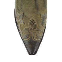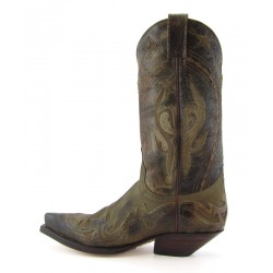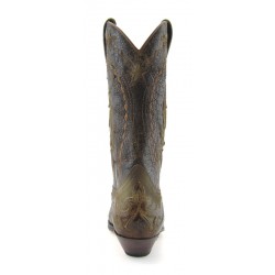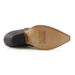 Stivale western Sendra in pelle bovina. Pellame con aspetto vissuto. Classico tacco ibiza e orma cuervo. Suola in cuio e cuciture Goodyear. Altezza stivale 33 cm circa.Altezza tacco 4 cm circa. 100% pelle. Made in Spain.
