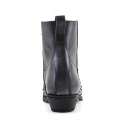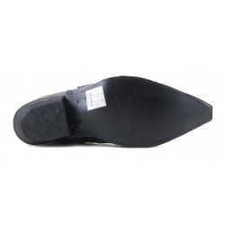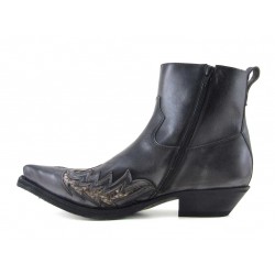 Stivale Sendra corto con zip. Orma cuervo e tacco west. Mascherina con inserto in pitone. Altezza stivale 20 cm circa. Altezza tacco 4 cm circa. Cuciture Goodyear Welted. 100% pelle. Made in Spain.