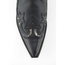 Stivale Sendra in pelle bovina con classico motivo a giglio e inserti in pitone. Fascetta rimovibile con serpente in pitone. Tacco ibiza e orma cuervo. Cuciture Goodyear Welted e suola in cuoio. Altezza stivale :21 cm circa. Altezza tacco : 4,5 cm circa.100% pelle . Made in Spain.