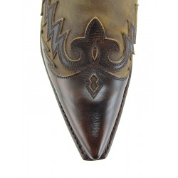Stivale Sendra in pelle bovina con giglio sul piede e aquila intarsiata sull'asta. Abbinamento cromatico stupendo. Suola in cuoio e cuciture Goodyear Welted. Punta cuervo e tacco west. Altezza stivale 36 cm circa. Altezza tacco 4 cm circa. 100% pello. Made in Spain.
