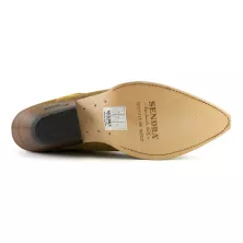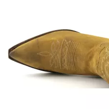 Stivale Sendra in pelle bovina scamosciata. Aspetto vissuto con punta cuervo e tacco ibiza. Risulta molto confortevole. Altezza stivale : 36 cm circa. Altezza tacco : 4,5 cm circa. Cucitura Goodyear welted. 100 % pelle. Made in Spain.