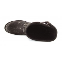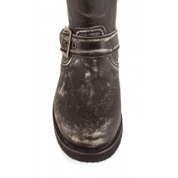Stivale Sendra in pelle bovina con aspetto vissuto. Suola in gomma e cuciture Goodyear. Altezza stivale 32 cm circa. Altezza tacco 4 cm circa. 100% pelle. Made in Spain.