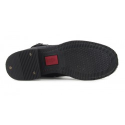 Stivale Sendra per biker , in pelle bovina con suola in gomma nitrilica , resistente all'olio. Punta rinforzata in acciao. Colore nero. Cuciture Goodyear welted. Altezza stivale 32 cm circa.