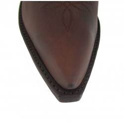 Stivale Sendra in pelle bovina. Punta cuervo e tacco ibiza. E' il basico western. Un best seller. Colore nero opaco leggermente lucido. Cucitura Goodyear e suola in cuoio. Altezza stivale 36 cm circa. Altezza tacco 4,5 cm circa. 100% pelle. Made in Spain.