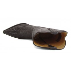 Stupendo stivale Sendra prodotto in Messico, in edizione limitata. Il piede è realizzato con la coda di caimano mentre l'asta è in pelle bovina. Cuciture Goodyear e suola in cuoio. Altezza stivale 36 cm circa. Altezza tacco 4,5 cm circa.