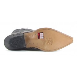 Stivale Sendra con piede in pitone e gamba in pelle bovina. La pelle di pitone , in colore naturale , è leggermente lucida. Suola in cuoio e cuciture Goodyear. Altezza stivale 35,5 cm circa. Altezza tacco 4 cm circa. Punta pico e tacco west.