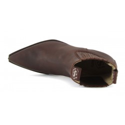 Stivale tronchetto western Sendra in pelle bovina ingrassata. Tacco west e punta cuervo. Cuciture Goodyear Welted e suola in cuoio. Altezza stivale :21 cm .Altezza tacco : 4,0 cm.100% pelle . Made in Spain.