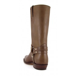 Stivale biker Tony Mora con fascetta e anello . Suola in cuoio e cuciture Goodyear.  Altezza stivale 34 cm  circa. Altezza tacco 3 cm circa.   100% pelle. Made in Spain.